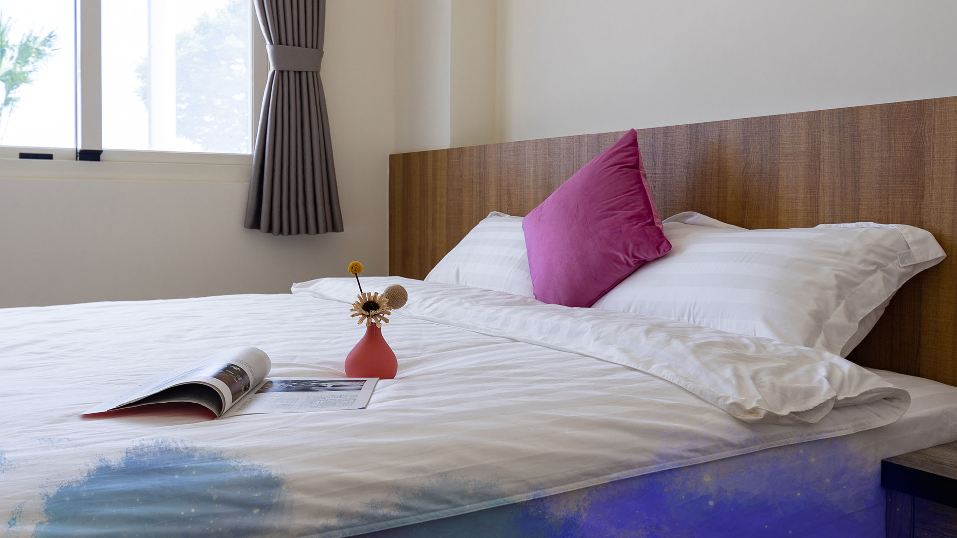 設計以簡約現代為主,融合木質元素,大面窗戶讓自然光灑滿整個室内。從家具選擇到空間擺設,毎一處細節都經過民宿主人用心打理,秉持舒適與美感的完美結合,讓旅客在這裡感受到放鬆且無壓力的居住環境。